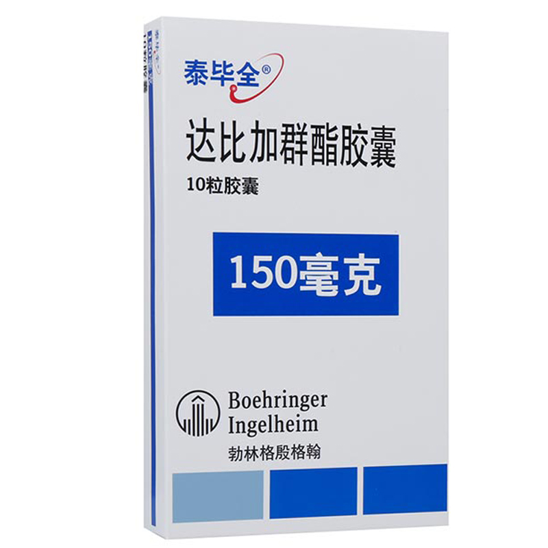 2004年11月一2006年3月,在欧洲、澳洲和南非105个研究中心进行的随机双盲RE.MODEL研究,2076例行单侧全膝关节置换术的患者随机分入达比加群酯各剂量组[150mg组(一日1次口服150mg)、220mg组(一日1次口服220mg)]或依诺肝素组(一日1次皮下注射40mg)。达比加群酯各剂量组于术后1-4小时开始服药,依诺肝素组于术前一日晚间开始用药,疗程均为6—10日,随访期为3个月。主要疗效评价终点为总VTE(包括血管造影和症状性VTE)发生率及死亡率的复合终点,安全性评价终点为出血事件发生率。研究最终对1541例患者的临床数据进行了有效性分析,结果表明:达比加群酯疗效与依诺肝素无显著差异,150mg组、220mg组和依诺肝素组达到主要疗效评价终点的患者比例分别为40.5%(213例,526例)、36.4%(183例/503例)和37.7%(193例/512例),其中220mg组稍低于其他两组;在预防症状性深静脉血栓形成方面,达比加群酯150mg组和220mg组均优于依诺肝素组,三组深静脉血栓形成的发生率分别为0.4%(3例/696例)、0.1%(1例,675例)和1.2%(8例,685例)。安全性方面,达比加群酯各组出血发生率与依诺肝素组相比无显著差异,三组分别为1.3%(9例/703例)、1.5%(10例/679例)和1.3%(9例/694例),三组均未出现因大出血死亡的病例。三组因不良反应导致治疗终止的发生率无显著差异,分别为3_7%、3.7%和4.6%。提示在预防全膝关节置换术后VTE发生方面,达比加群酯至少与依诺肝素疗效同等、安全性类似。