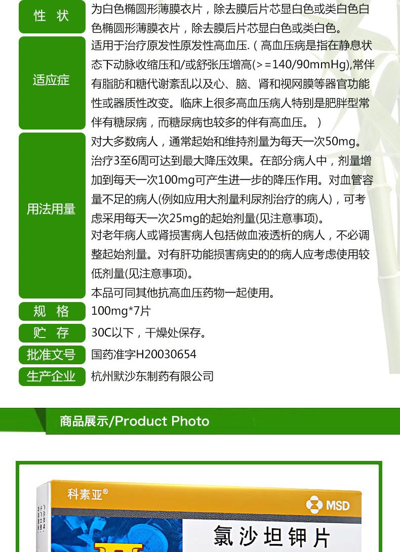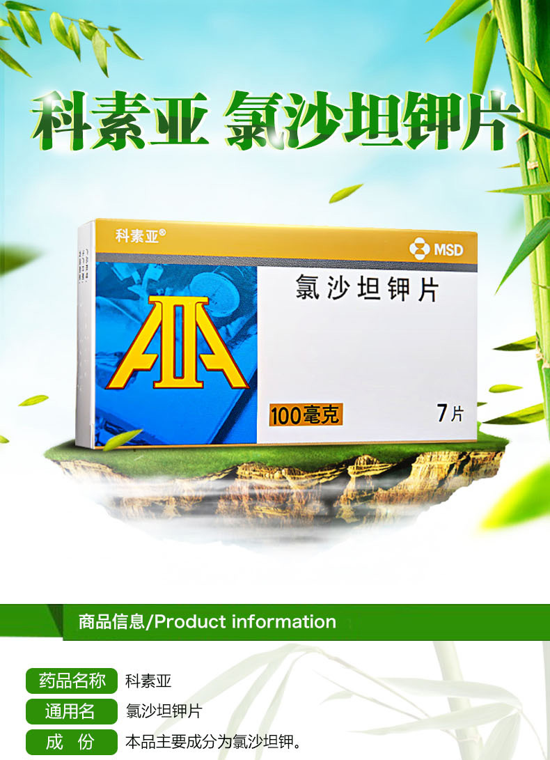 请仔细阅读(科素亚 氯沙坦钾片 100mg*7片)的作用说明,并在药师指导下购买和使用。