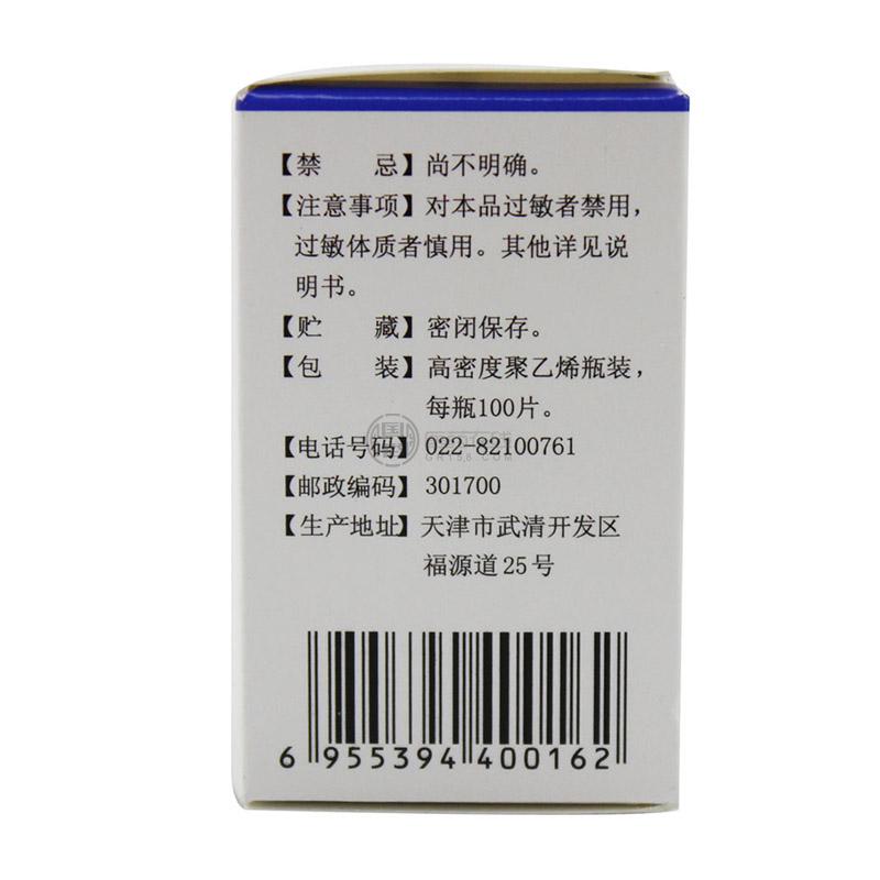 【包   装】高密度聚乙烯瓶装,每瓶100片。