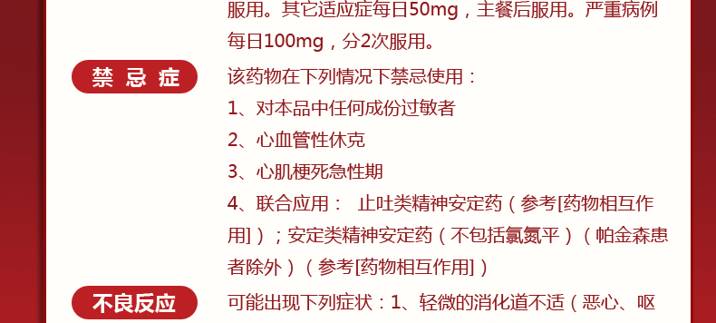 4.联合应用:止吐类精神安定药(参考[药物相互作用]);安定类精神安定药(不包括氯氮平)(帕金森患者除外)(参考[药物相互作用])