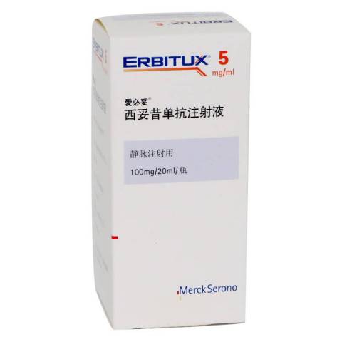 本品单用或与伊立替康(irinotecan)联用于表皮生长因子(EGF)受体过度表达的,对以伊立替康为基础的化疗方案耐药的转移性直肠癌的治疗。