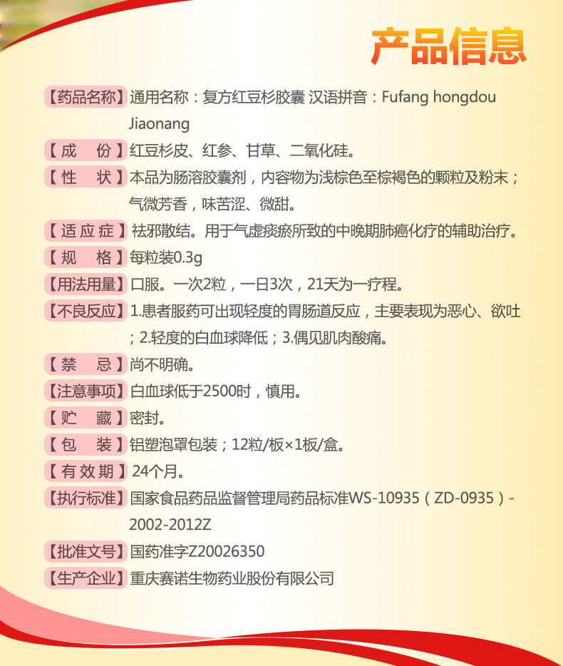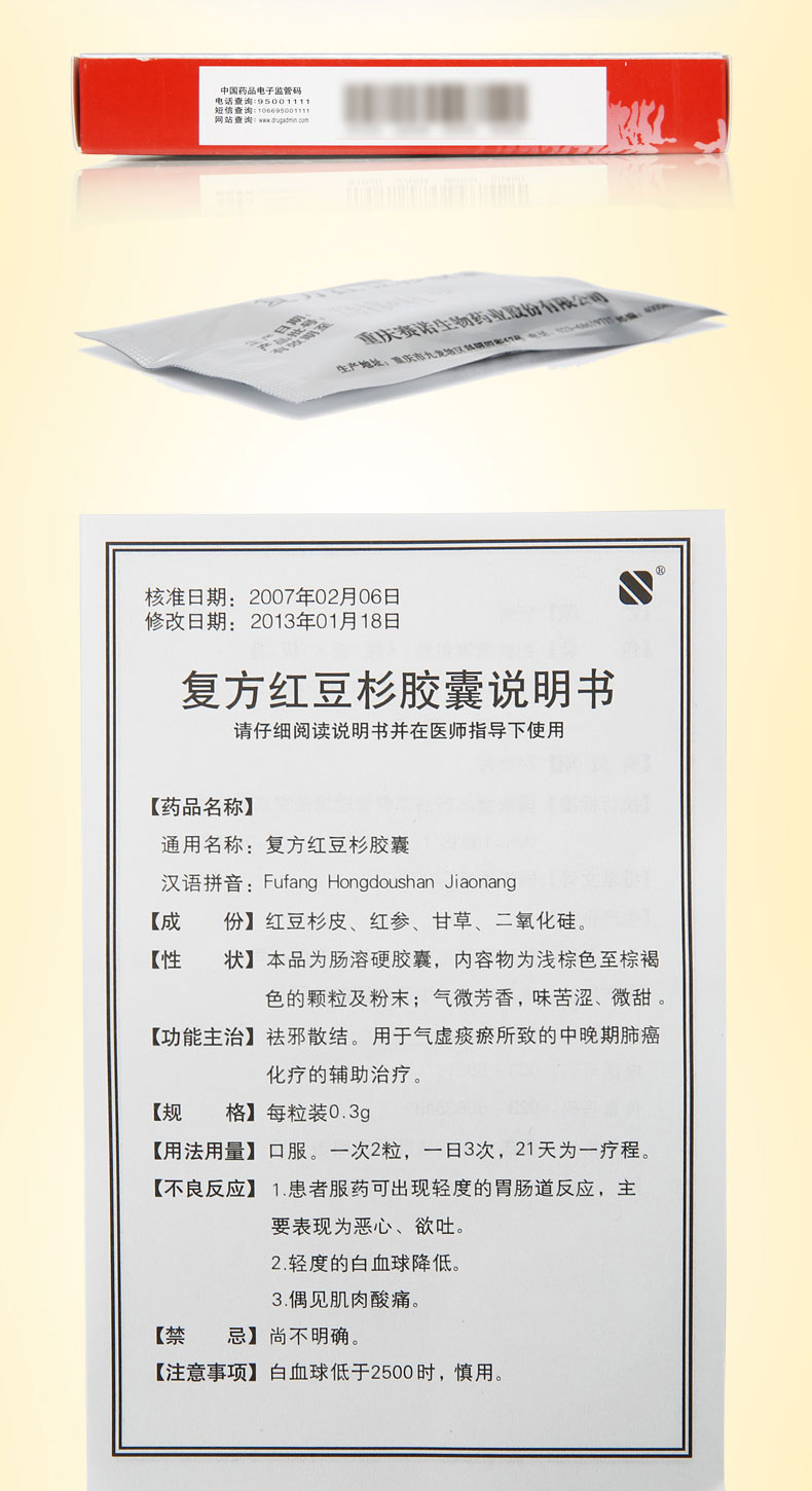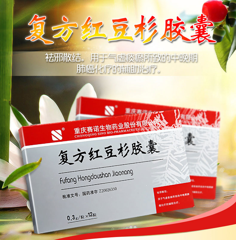 【主要成份】 红豆杉皮、红参、甘草、二氧化硅。