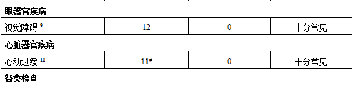 表3汇总了在II期临床试验(NP28761,NP28673)和III期临床试验BO28984中接受本品治疗的患者所发生的药物不良反应(ADR)。来自临床试验的药物不良反应按MedDRA系统器官分类列示。各药物不良反应的发生频率按以下惯例定义:十分常见(≥ 1/10);常见(≥ 1/100至< 1/10);偶见(≥ 1/1000至< 1/100);罕见(≥ 1/10000至< 1/1000);十分罕见(< 1/10000)。在每个系统器官分类内,按照发生频率降序展示不良反应。