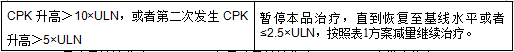 ALT = 丙氨酸氨基转移酶;AST = 天冬氨酸氨基转移酶;CPK =肌酸磷酸激酶; ULN = 正常值上限 ;CTCAE=美国国立癌症研究所(NCI)不良事件通用术语标准