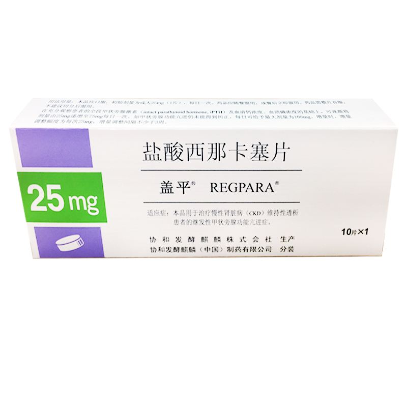 本品应口服,初始剂量为成人25mg(1片),每日1次。药品应随餐服用,或餐后立即服用。药品需整片吞服,不建议切分后服用。在充分观察患者的全段甲状旁腺激素(IPTH)及血清钙浓度、血清磷浓度的基础上,可逐渐将剂量由25mg递增至75mg每日1次。如甲状旁腺功能亢进仍未得到纠正,每日可给予最大剂量为100mg。增量时,增量调整幅度为每次25mg,增量调整间隔不少于3周。