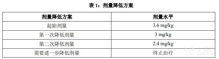 根据表1和表2中的指导进行剂量调整。对症状性不良事件的处理可能需要暂时中断给药、降低剂量或终止本品治疗。