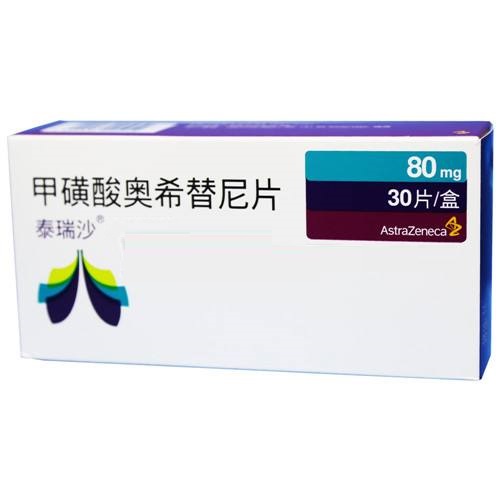 安全性数据总结在既往接受过EGFRTKI治疗的EGFRT790M突变阳性NSCLC患者中的研究下文中的数据反映了既往接受过EGFRTKI治疗的690例EGFRT790M突变阳性非小细胞肺癌患者的本品暴露情况。这些患者在一项随机I期研究(AURA3-仅二线治疗)和两项单臂研究中(AURA扩展研究(AURAex)和AURA2-二线及二线以.上治疗)(见[临床试验]),接受了剂量为80mg/天的本品治疗。在AURA3中,奥希替尼组患者(n=279)和化疗组患者(n=136)的中位治疗持续时间分别为8.1个月和4.2个月。在汇总的II期研究中,大多数患者既往都接受过多线治疗:68%的患者既往接受过至少2个治疗方案,46%的患者既往接受过3线或3线以,上治疗。大约有三分之二(63%)的患者既往除了接受过EGFRTKI治疗,还接受过铂类药物化疗。在AURAex和AURA2中,总体研究治疗的中位持续时间为13个月(N=411)。绝大多数不良反应的严重程度为1或2级。最常报告的药物不良反应(ADR)有:腹泻(44%)和皮疹(41%)。在两项研究中,3级和4级不良事件的发生率分别为26%和2%。在以每日80mg的方案接受本品治疗的患者中,因不良反应减量的患者占2.3%。有6.5%的患者因为不良反应或实验室检查异常而停药。上述临床研究中排除了具有间质性肺病(ILD)、药物诱导ILD、需类固醇药物治疗的放射性肺炎既往史或任何临床活动性LD证据的患者。上述研究中排除了静息心电图(ECG)检查显示节律和传导异常具有临床意义的患者(例如QTc间期大于470ms)。筛选期时,对患者进行LVEF评价,此后每12周评价一次。不良反应列表按发生率划分的不良反应列表见表2,表2中的数据尽可能基于AURA3、AURAex和AURA2研究中的690例既往治疗过且接受本品80mg/天治疗的EGFRT790M突变阳性患者,汇总数据集中具有可比性的不良反应报告中的发生率。不良反应根据MedDRA的系统器官分类(SOC)进行列表。在每个系统器官分类内部按发生频率对药物不良反应进行了排列,其中发生频率最高的反应居首。在每个发生类别内则按严重程度的降序对不良反应进行了排列。此外,我们还依据CIOMSIII的概念对每项不良反应相应的发生频率进行了归类,这些发生频率的类别为:极常见(≥1/10);常见(>1/100至<1/10);少见(≥1/1,000至<1/100);罕见(21/10,000至<1/1,000);极罕见(<1/10,000);不详(根据现有数据无法估计)。AURAex(II期)、AURA2和AURA3研究中接受过至少一-剂本品治疗的患者的不良反应总结见表2。 AURA17安全性数据总结在亚太地区I期研究(表4.AURA17,参见[临床试验])中获得了171名(其中148名为中国患者)既往接受过治疗的EGFRT790M突变阳性的NSCLC患者使用本品的亚太人群安全性数据,这些患者服用的剂量为每日80mg。AURA17的安全性数据与全球II期安全性数据--致。绝大多数不良反应的严重程度为1或2级。最常报告的ADR有:腹泻(34.5%)和皮疹(27.5%)。AURA17研究中,CTCAE3级以上不良事件的发生率为25.1%。在以每日80mg的方案接受本品治疗的患者中,因ADR诚量的患者占1.2%。有3.5%的患者因为不良反应或实验室检查异常而提前停药。单臂II期AURAex、AURA2和AURA17研究中的安全性结果与AURA3奥希替尼组的观察结果大体一致。没有观察到其它或预料之外的毒性,且不良事件已经按照类型、严重程度和发生频率列出。特定药物不良反应的描述间质性肺病(ILD) 在AURA的系列研究中,有8.2%的日本裔患者出现了ILD,而非日本裔亚裔患者和非亚裔患者的发生率分别为1.9%和2.9%。ILD或ILD样不良反应发生的中位时间为2.8个月(见(注意事项])。 QTc间期延长在AURA系列研究中接受本品80mg治疗的833名患者中,0.7%的患者(n=6)发生QTc间期延长,并超过了500ms,有2.9%的患者(n=24)的QTc间期较基线值延长了60ms以上。对本品进行的一项药代动力学分析预测,QTc间期延长的发生率会出现浓度依赖性增加。在AURA系列研究期间无QTc相关心律失常报告(见[注意事项])。对胃肠道的影响在AURA系列研究中,43.5%的患者报告腹泻,其中36.8%为1级,5.5%为2级,1.0%为3级;没有4级或5级事件的报告。0.3%的患者需要降低剂量,0.7%的患者中断用药。导致研究中止的事件有1件(0.1%)。在AURA3中,至发生的中位时间为22天,2级事件的中位持续时间为5.5天。心肌收缩力改变 AURAex和AURA2研究中(N=655),具有基线和至少1次随访的LVEF评估的患者中4.0%(26/655)发生左心室射血分数(LVEF)下降>10%,且下降至<50%。老年患者在AURA3研究中(N=279),有41%的年龄达65周岁或以上,其中,15%年龄在75周岁或以上。和年龄较轻的受试者(<65岁)相比,年龄>65岁的受试者出现导致研究药物剂量调整(暂停用药或减量)的不良反应的人数更多(5.3%vs..4.2%)。这两类患者和年龄较轻的患者相比,老年患者出现的3级或以上的不良反应更多(5.3%vs..2.4%)。总体来看,此类受试者和年轻受试者之间的有效性并无差异。在对AURAII期研究的分析中,观察到的安全性和有效性结果也保持了一致性。可疑不良反应的报告药品获得批准后,报告可疑不良反应非常重要。此举能够保证对产品的风险~获益平衡进行持续的监测。