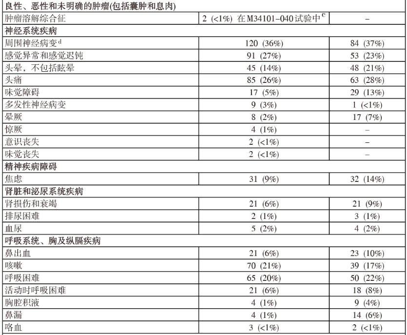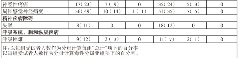 使用本品治疗可能会导致周围神经病变(PN),主要是感觉神经,但是也有伴或不伴周围感觉运动神经病变的严重运动神经病变的报道。